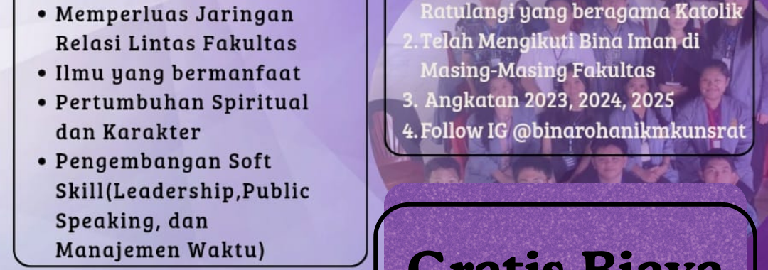 OPEN REGISTRATION BINA ROHANI KELUARGA MAHASISWA KATOLIK TAHUN 2026 Posted on March 13, 2026March 13, 2026 by Brendon Rahasia Posted in Informasi.
